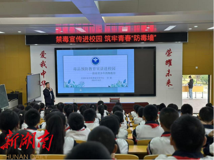 10月28日上午,石鼓区禁毒办联合角山镇禁毒志愿者,在碧桂园华耀小学开展一场以“禁毒宣传进校园,筑牢青春‘防毒墙 ’ ”为主题的宣传教育活动。此次活动旨在通过深入浅出的方式,向学生普及禁毒知识,增强其自我保护意识。