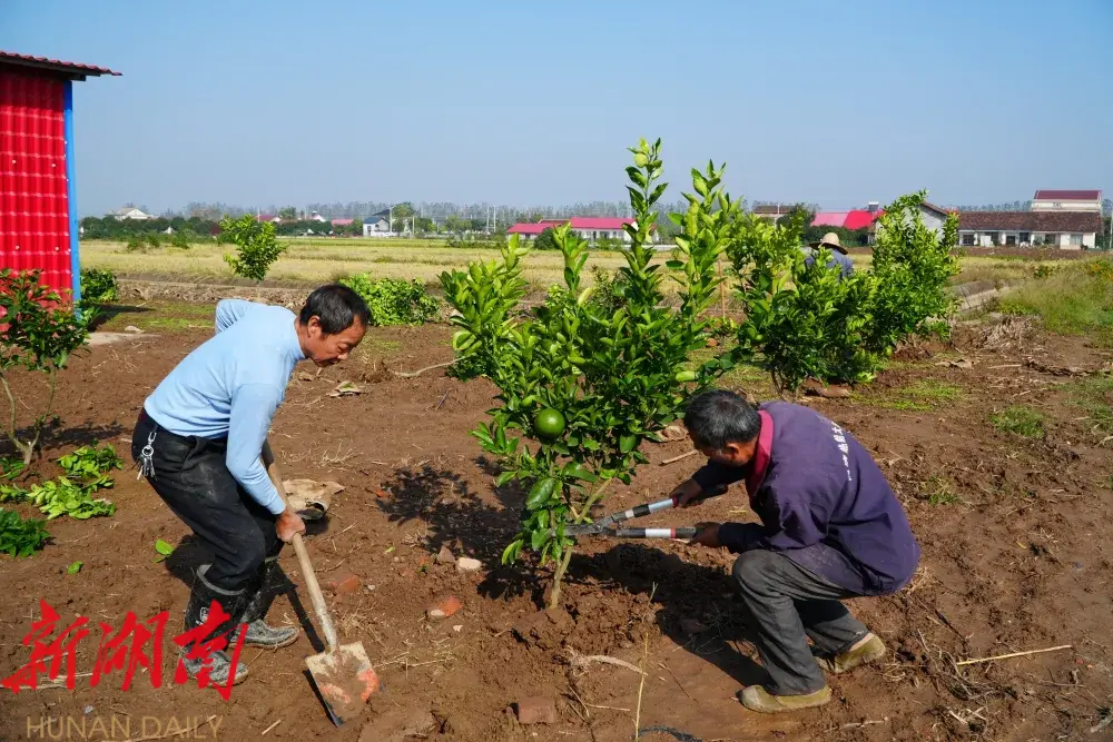 种植现场,大家热情高涨,积极投身到植“柚”、种桃活动中去,挥锹铲土、施肥混土、扶树正苗、培土围堰、提桶浇水、为果树“涂白”穿上越冬“防护服”,提升果树的抗寒、防虫及防病能力……大家互相协作、紧密配合,种下了一棵棵“希望树”“幸福树”“致富树”。一道道有条不紊、干劲十足的身影,勾勒出西洞庭秋景里一幅又一幅靓丽的实干风景图。