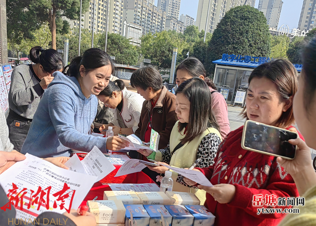 在宝塔街道天虹商场前坪,岳塘区国防动员办公室开展了国防动员(人民防空)知识有奖答题活动
