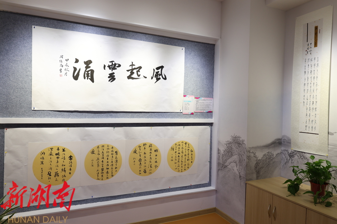 当天,风车坪学校校长和与会嘉宾共同为“风起”艺术空间揭牌。“风起”艺术空间 设有绘画、音乐、书法等多个功能区,具体有 嘉宾作品展区、学生作品展区、风华国乐展区、致敬齐白石水墨展区、书法展区 , 每个角落都弥漫着艺术的芬芳。据悉,这是湘潭市美术创作中心按照市委宣传部强基工程工作部署将流动美术馆项目送到学校的成果,也是全市首家校园艺术馆。在这里,风车师生可以尽情挥洒创意,用画笔描绘美好,用音乐抒发情感,近距离沉浸式接受艺术的熏陶。