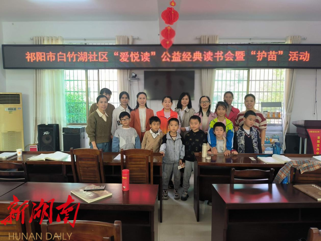 祁阳白竹湖社区开展“爱·悦·读”公益经典读书会暨“护苗”活动。