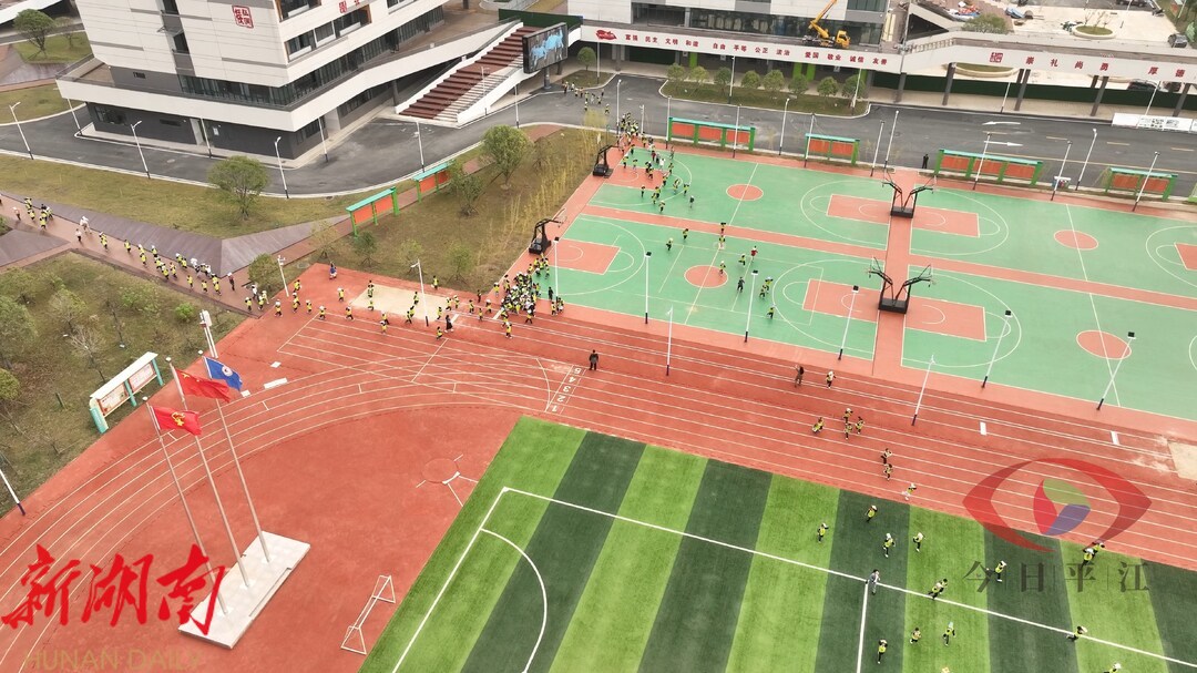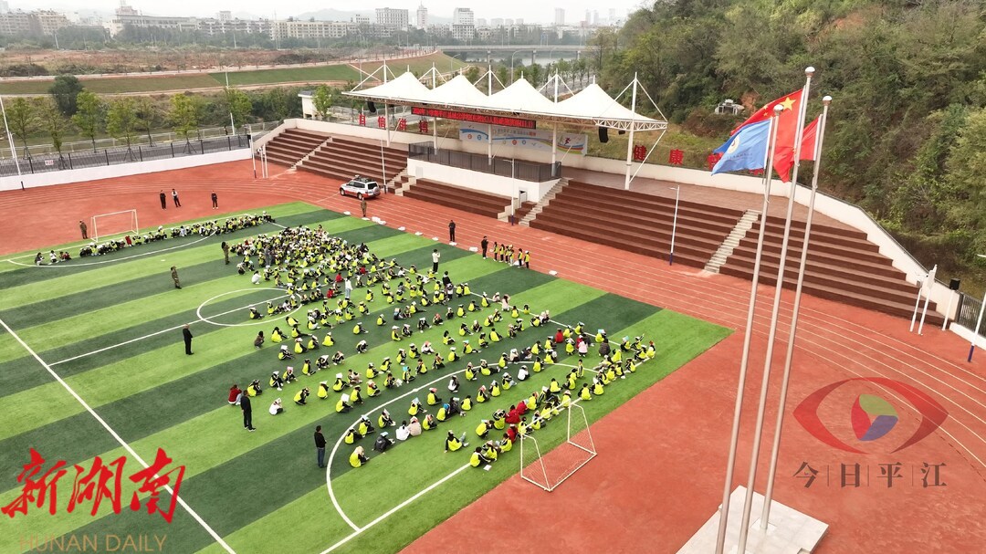 急促响亮的防空警报响起后,同学们在老师的指挥下,双手护头、弯腰快速向安全区撤离。整个演练仅用 9 分钟, 554 名师生全部安全到达操场并集合,各班迅速清点人数后向总指挥报告了情况。