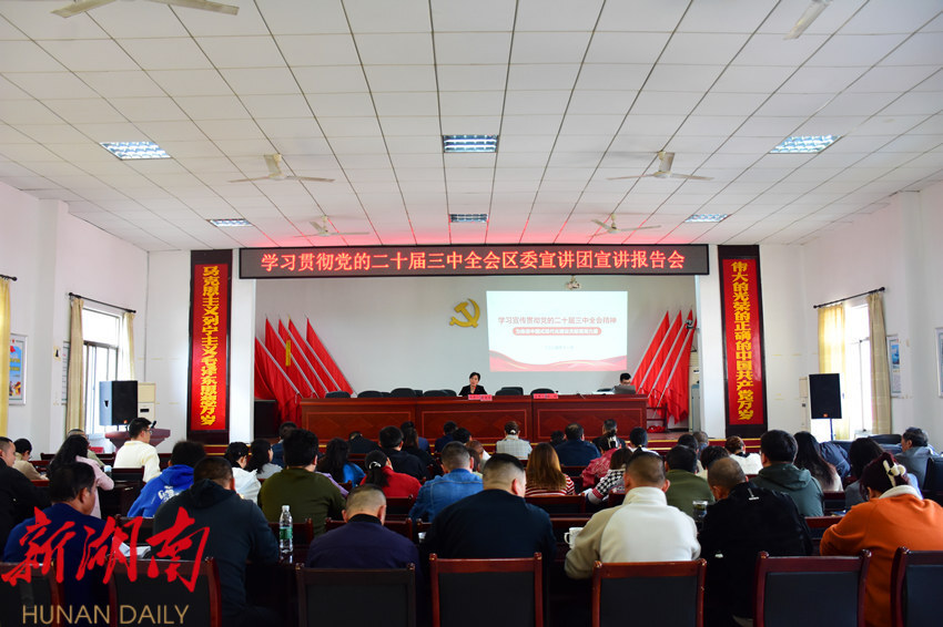雨湖新闻网讯 (记者 刘雄)11月1日下午,学习贯彻党的二十届三中全会精神区委宣讲团报告会在先锋街道举行。区委常委、宣传部部长周亮亮作专题报告。