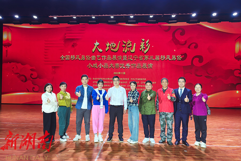 11月5日,“大地流彩”全国移风易俗曲艺作品展演 暨辽宁省第三届移风易俗小戏小品大赛优秀作品展演在辽宁省沈阳市举办。由蒸湘区干部职工共同创作、自导自演、精心编排的情景说唱节目《在希望的田野上》在此次展演中精彩亮相。