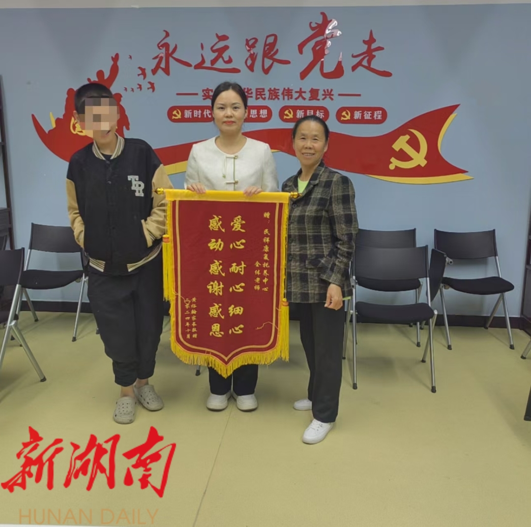 湖南日报·新湖南客户端11月5日讯(通讯员 黄姣)11月5日,一幕温馨的场景在开福区民祥康复托养中心上演。一位家属来到该机构办公室,手中紧握着一面锦旗,上面写着“爱心、耐心、细心,感动、感谢、感恩”,以此向该机构的工作人员表达由衷的感激。