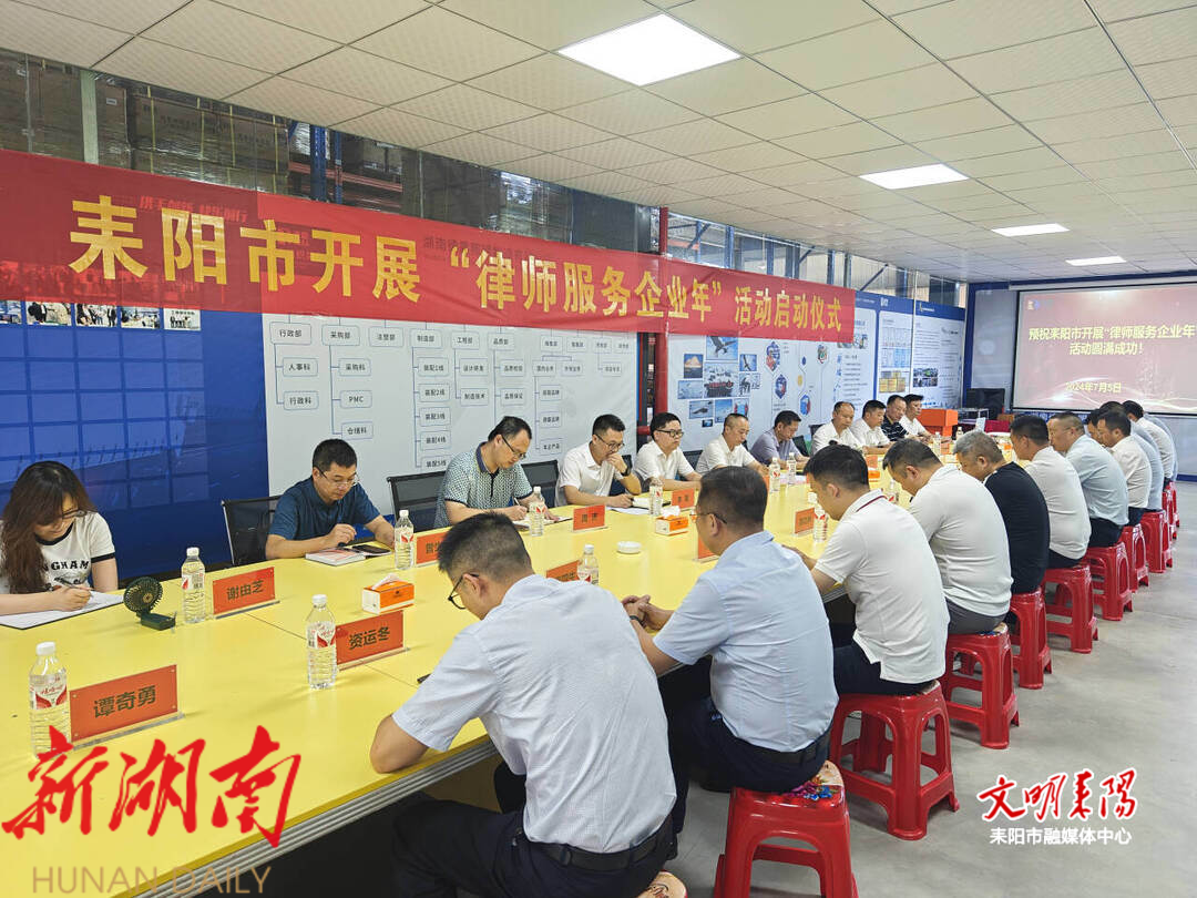 政策宣讲解读、解答法律咨询、提供法治服务……7月5日,耒阳市“律师服务企业年”活动在湖南德霸照明制造有限公司举行,从湖南教正、惠湘、丹阳、湘德4家律师事务所选派10名资深律师,将为42家民营企业提供个性化、精细化和常态化的法律服务,助力民营经济高质量发展。