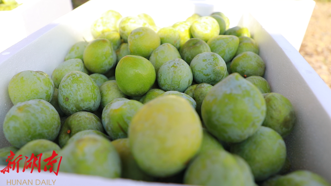 在果园外,来自祁阳的客商王凤娇正忙而不乱地选果、称重、装箱、打包。每年开园,他都是第一个赶来采购的客商,经过多年的合作,这儿的李子早已成为他收购的免检佳品。