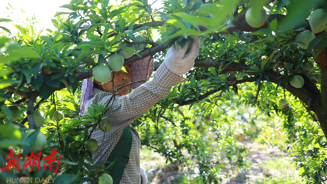 新湖南客户端7月17日讯(通讯员 何丽 陈前 陈俊宏 )盛夏时节,瓜果飘香,又是奈李收获季。位于东安县石期市镇大荣底村的400亩奈李在阳光的映照下闪烁着诱人的光泽。果农们穿梭于果树间,用勤劳的双手摘下这一季的收获。