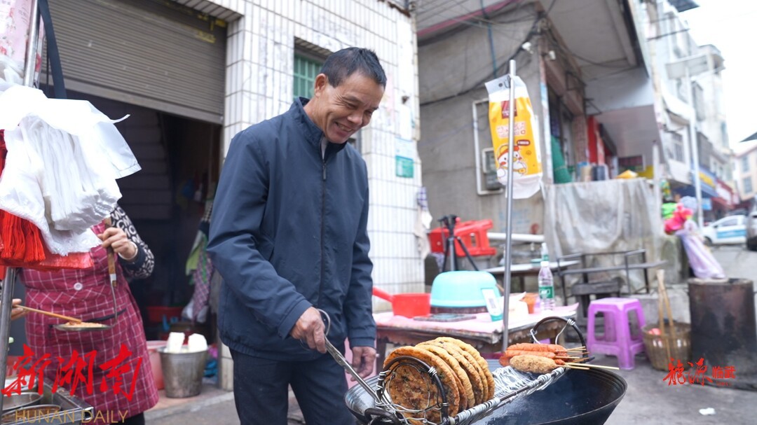据了解,灯盏糍粑距今已有50年的历史,是麦市镇远近闻名的一张名片。每逢麦市赶圩,街头巷尾热闹非凡,男女老少手中都拿着一个灯盏糍粑。黄元兰夫妇的灯盏糍粑每天能卖出一百余个,春节期间更是能卖到三四百个。