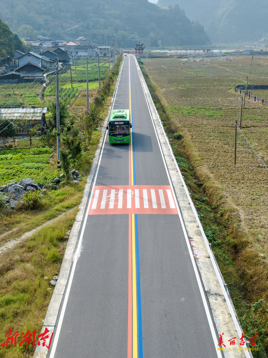 11月5日,绿色城乡公交行驶在吉首市矮寨镇X077洽比河旅游公路上。近年来,该市大力推进“四好农村路”建设,不断完善农村公路基础路网,加快补齐农村交通基础设施短板,全面提升农村交通运输服务品质,实现乡镇和建制村通硬化路率100%,112个建制村通客车率100%,让“四好农村路”成为带动当地经济社会发展的民生路、致富路、幸福路,为助推乡村全面振兴铺就康庄大道。