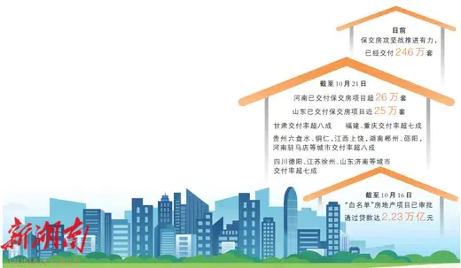 强化融资支持,分类处置项目,推动交付进度……各地多措并举,有力推进保交房工作。截至10月21日,河南已交付保交房项目超26万套;山东已交付保交房项目近25万套;甘肃交付率超八成;福建、重庆交付率超七成;贵州六盘水、铜仁,江西上饶,湖南郴州、邵阳,河南驻马店等城市交付率超八成;四川德阳、江苏徐州、山东济南等多个城市交付率超七成。