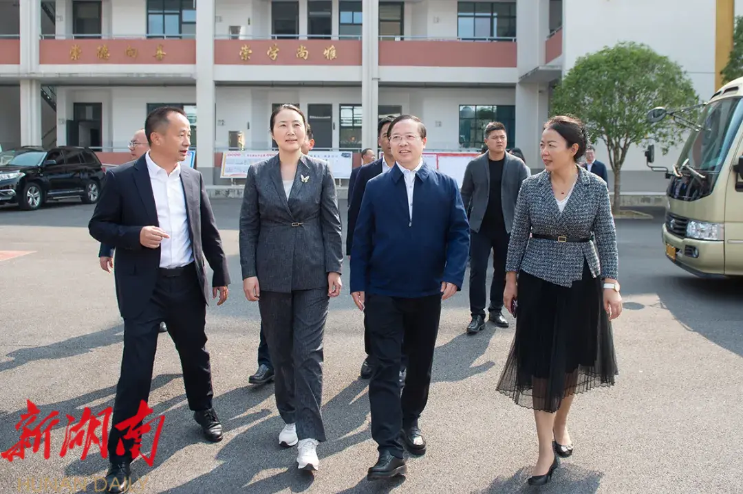 长沙市委常委、市委统战部部长刘汇一行在张坊镇上洪完小实地调研,长沙市委常委、浏阳市委书记肖正波参加。