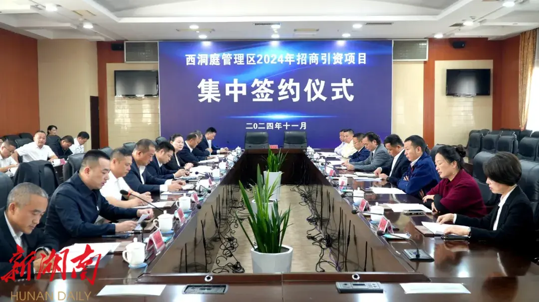 11月4日,西洞庭管理区2024年招商引资项目集中签约仪式在鑫湖缘宾馆九楼会议室举行。区党委书记李智勇出席活动并讲话。区党委副书记、管委会主任叶春华代表区党委、管委与企业项目签约。区党委副书记、管委会副主任王亮主持签约仪式。