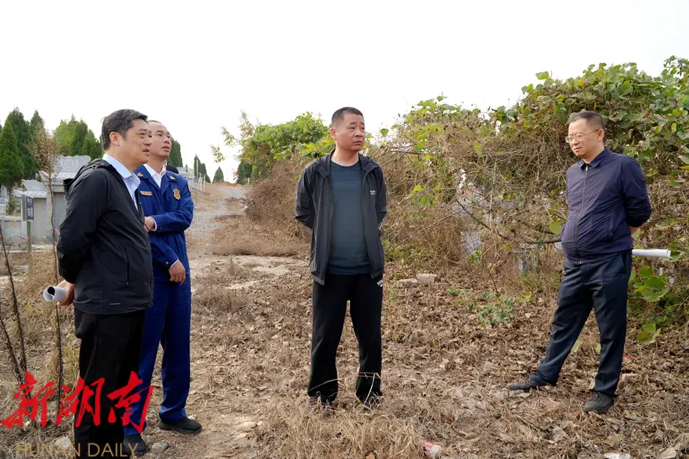 西洞庭“三山”公墓位于山区林地,拥有大片易燃植被,祭祀烧纸极易成为引发森林火灾的重要原因之一。11月4日,区党委委员、政法委书记任立带队前往“三山”公墓调研消防通道解决问题。区民政局、自然资源局、消防救援大队主要负责人参加。