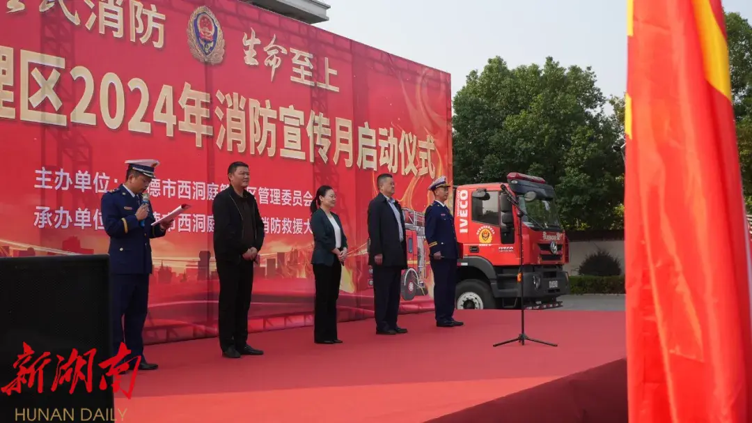启动仪式宣读了全区“119”消防宣传月活动工作方案。辛勤代表区党委管委对多年来支持消防工作的社会各界人士表示衷心的感谢,并对奋战在一线的广大消防救援人员致以崇高的敬意,并指出此次活动目的是在全区再一次兴起消防宣传热潮,普及消防知识,提高全民消防安全意识,发动单位和群众积极参与火灾隐患整治工作。各单位要以此次活动为契机,多层次、全方位、高密度深入开展社会消防宣传工作,齐心筑牢安全防线,协力建设和美西洞庭。