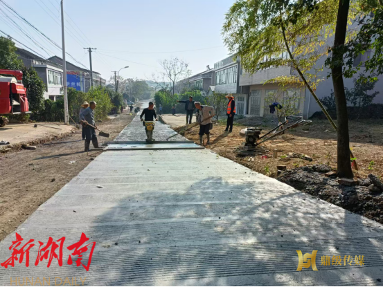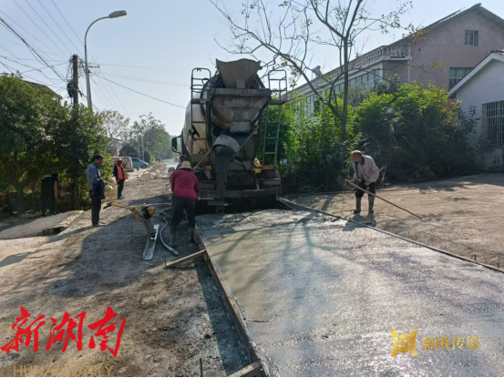 湖南日报·新湖南客户端 11月7日讯(通讯员 彭麟)近日,一辆辆装载混凝土的拖拉机、斗车繁忙地穿梭在双桥坪镇大桥村的道路上,十余名工人及热心村民正忙碌地为大桥村的道路进行硬底化施工。