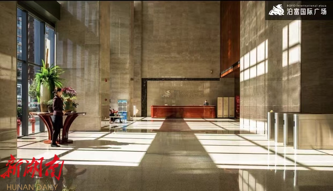 泊富国际广场精心打造的5A甲级写字楼,配备16 米挑高的精装大堂;LOW-E 双层玻璃幕墙、进口三菱 VRV冷暖中央空调、芬兰通力电梯;拥有1550 个车位。目前已入驻多家金融、科技、文化总部企业,包括中国银联、新韩银行、台湾合作金库银行、英大证券、新华书店、三星、美卓、得物 APP、天职国际会计师事务所等头部企业总部基地及在湘外资企业总部,位列长沙楼宇经济核心阵营,连续 7 年成为亿元级税收楼宇,荣获 “外资企业总部标杆楼宇”“总部经济标杆楼宇” 等称号。