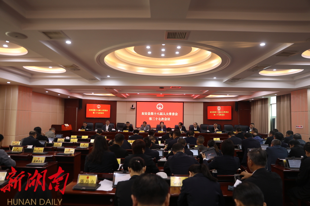 新湖南客户端11月7日讯(通讯员 庾先文)11月6日,东安县第十八届人大常委会召开第二十七次会议。县人大常委会主任张波主持会议并讲话,县人大常委会副主任唐新柱、胡慧川、蒋永辉、刘劼,县人大常委会党组成员廖祝春参加会议,副县长周海雄应邀列席会议。