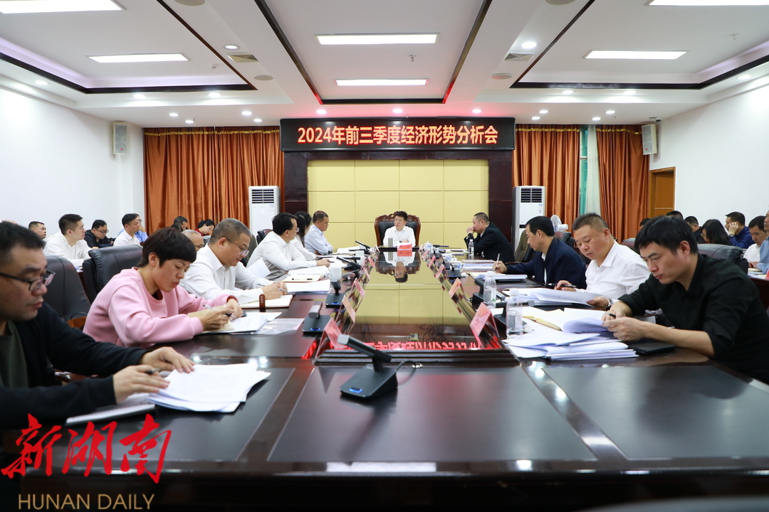新湖南客户端11月6日讯(通讯员 唐诗琴)11月5日下午,东安县召开2024年前三季度经济形势分析会。县委副书记、县长蒋华出席会议并讲话,强调要抢抓“两重”“两新”政策机遇,持续深入实施“三走三抓”,以有力有为促高质高效。县委常委、常务副县长张恒主持会议,副县长周海雄、秦琦、杨伟燕、贺勇参加会议。