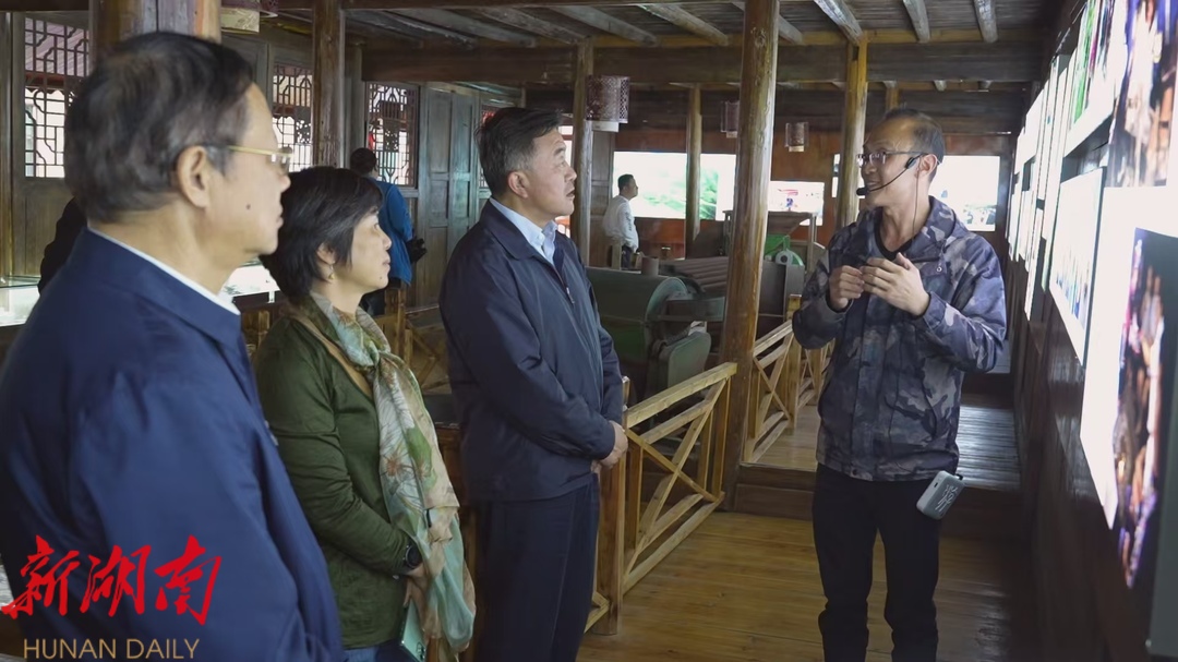 在洞口县古楼乡茶文化生态园,李民一行先后来到茶文化展厅、茶苑长廊及洞口县红色文化教育馆,详细了解了古楼茶历史文化、景点基础设施建设、景区客流量以及茶文旅融合发展等情况。