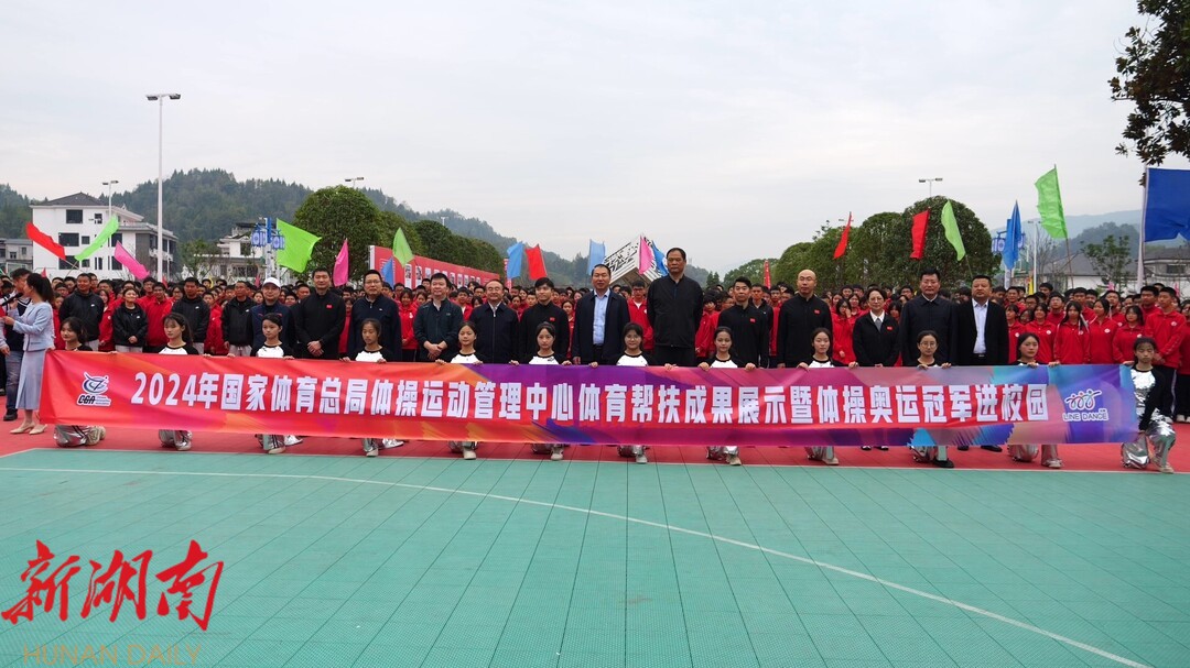 桑植县是国家体育总局的定点帮扶县之一,针对桑植县体育文化特色和现实需求,国家体育总局体操运动管理中心开展了排舞进校园等大体操项目公益送培活动,选派保定市第七中学的老师来到贺龙中学传授排舞技巧与经验,在他们的帮助下,贺龙中学排舞队获2024年全国排舞冠军赛特等奖。