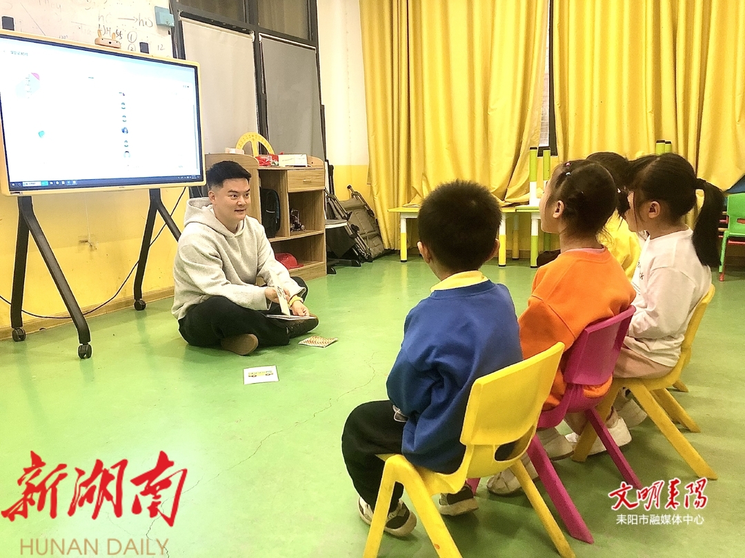 近日,记者来到耒阳市香江教育学校,校长曹天宇正声情并茂地与孩子们互动,手中拿着色彩鲜艳的英语卡片,用夸张而有趣的表情引导孩子们大声读出单词。孩子们的眼睛里闪烁着好奇与兴奋的光芒,目不转睛地盯着曹天宇,积极回应着他的每一个指令。