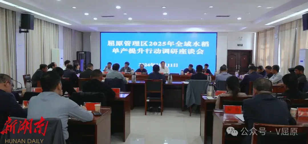 11月11日,湖南省农科院党委委员、副院长、湖南杂交水稻研究中心党委书记许靖波带队赴屈原管理区开展2025年全域水稻单产提升行动调研座谈活动,客观总结2024年全域水稻单产提升工作,谋划部署2025年全域水稻单产提升工作,加速推动屈原水稻全产业链发展,为岳阳国家农高区创建奠定基础。屈原管理区党委书记向科军,区党委委员、区管委会副主任曹正平,湖南杂交水稻研究中心相关负责人,区直部门、各乡镇负责人,经营主体代表参加。