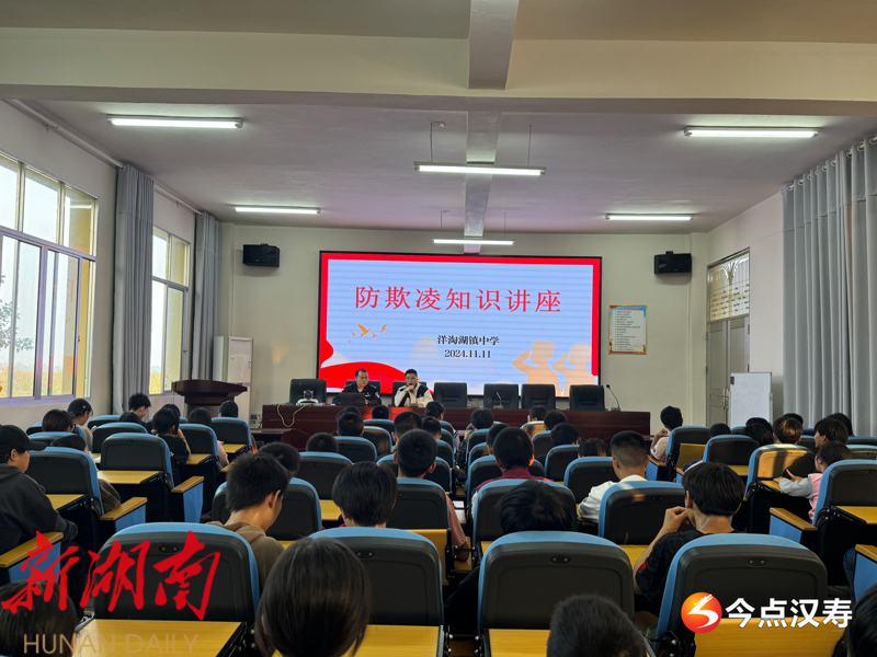 11月11日下午,汉寿县洋淘湖镇中学开展预防校园欺凌讲座。
