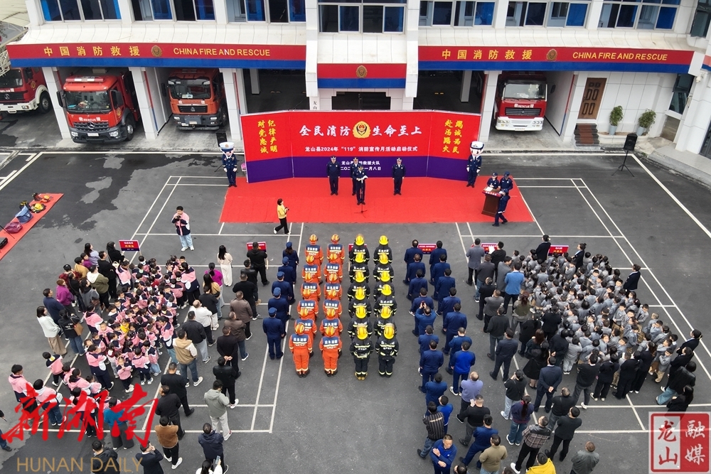 启动仪式上,县消防救援大队相关负责人宣读了《2024 年龙山县“119”消防宣传月 活动实施方案》,并宣布“119”消防宣传月正式启动。