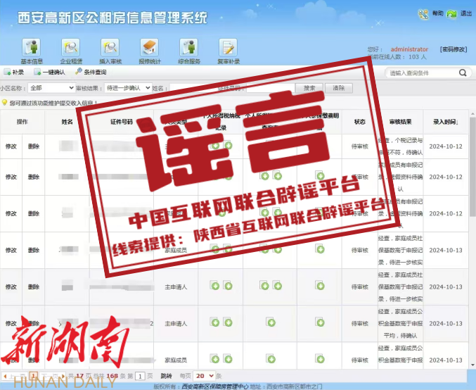 真相: 近期,有不法分子伪造西安高新区公租房信息管理系统审核界面,在网络上散布公租房资格审核虚假信息,引发关注。对此,西安高新区住房和城乡建设局发布《关于警惕不法分子伪造虚假信息的声明》称,切勿轻信网络、微信中发布的高新区公租房相关政策虚假信息及类似委托代办信息,以避免个人经济、财产受到损失。高新区公租房资格审核全程不代办、不收费,审核结果均以市级六部门联审反馈结果为准。同时,任何通过违规代办以及提供虚假材料骗取公租房资格的,一经发现,将严肃查处,取消保障资格。(来源:陕西省互联网联合辟谣平台)