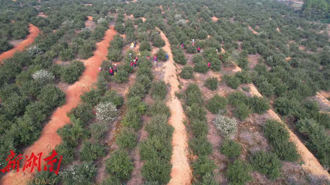 由于水肥一体化项目的实施,今年桑海波的油茶产量达到了亩产2100斤,较去年增加近1000斤。油茶林的总产量在300万斤以上,产值超过400万斤。油茶刚采摘下树,客商们就上门求购。