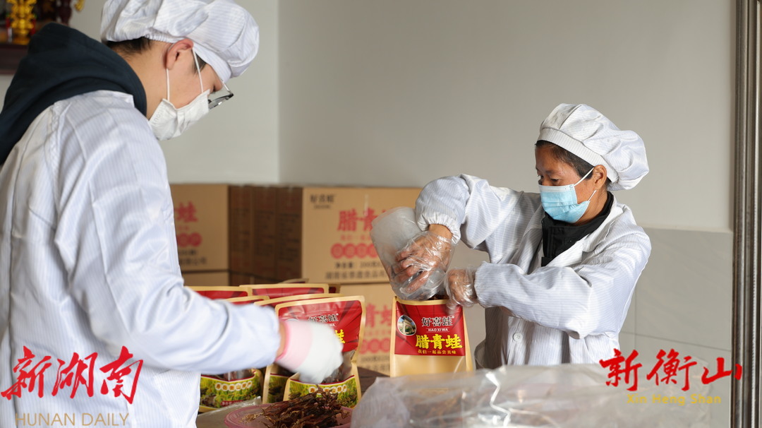 “今年,我们与湖南泰鑫食品加工厂进行合作,成功将我们的黑斑蛙加工成腊制青蛙,使其得以进入市场。这样我们不仅实现了自产自销,还构建了产业链一体化,确保了我们蛙农的基本收益。”衡山雅元生态农业发展有限公司负责人曹岳希告诉记者。