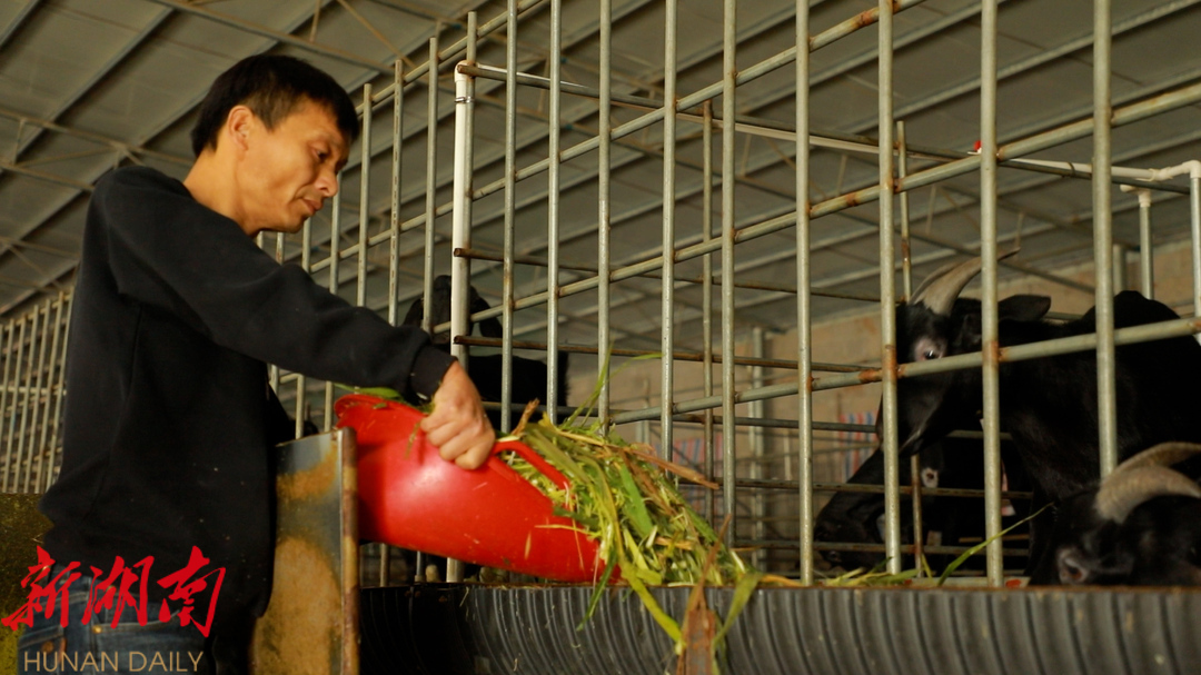 今年44岁的何少平身患三级残疾,2021年,在县政府的帮助下,他建起了一个500平方米的黑山羊养殖场。这些年,在降低养殖成本上,他花了不少心思,摸索利用高家村本地资源优势,收集农作物秸秆作为饲料,不仅降低了养羊成本,还解决了废弃秸秆的回收难题。