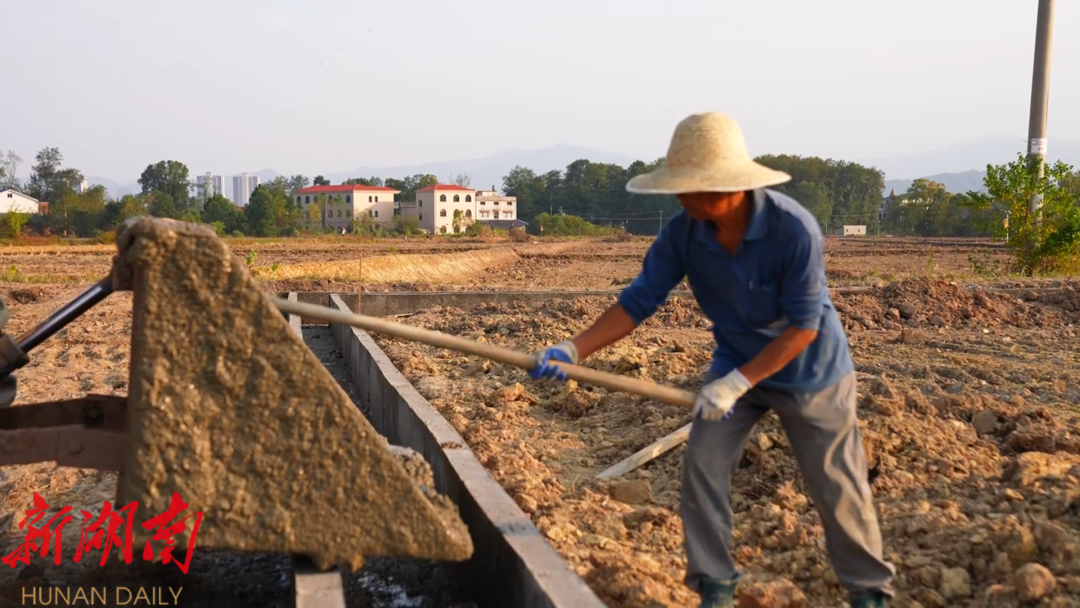 在长寿镇邵阳村的高标准农田施工现场,机器轰鸣声不绝于耳,沟槽硬化、地面填土平整、模板加固,施工人员分工协作,密切配合,现场一派热火朝天的景象。