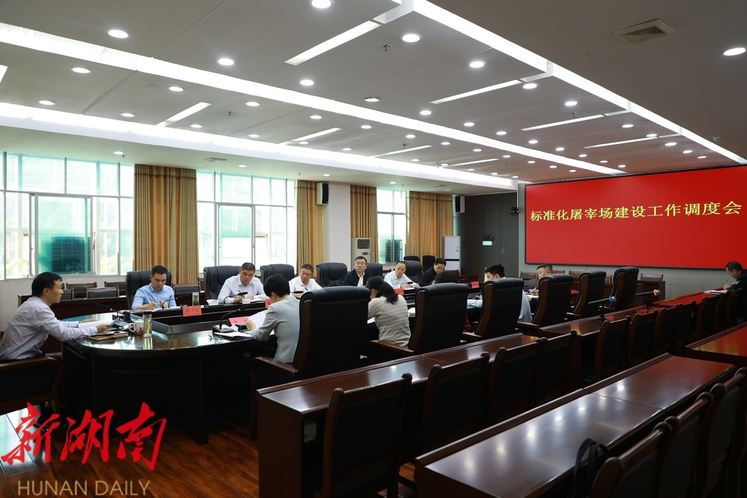 新湖南客户端11月14日讯(通讯员 易恒戬)11月13日下午,县委书记唐何主持召开标准化屠宰场建设工作调度会。县委副书记、统战部部长李月红,县委常委、县委办主任黄敏,副县长周文参加。