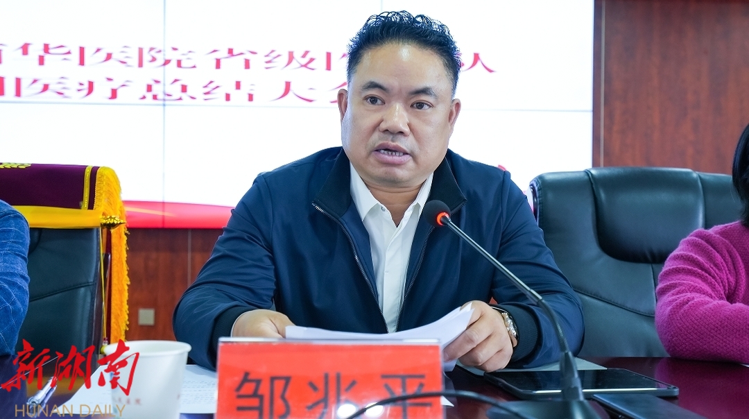 会议最后,县卫健局副局长邹兆平作总结讲话。他首先对南华医院专家团队的辛勤付出表示衷心的感谢,并高度评价了此次巡回医疗工作的成效。他表示,此次活动不仅为新化县的医疗卫生事业做出了积极贡献,也进一步加深了南华医院与新化县各医疗机构之间的友谊与合作。他希望双方能够建立更加紧密的合作关系,共同推动当地医疗卫生事业高质量发展,让新化县的卫生健康事业焕发出更加蓬勃的生机与活力。