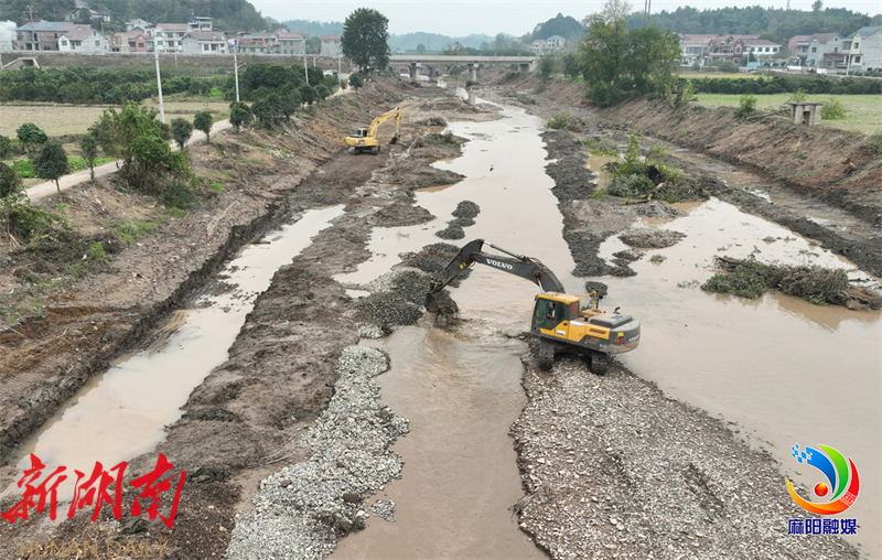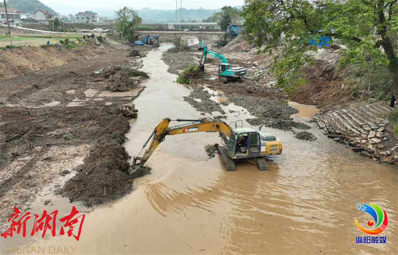 连日来,位于麻阳滑石江治理工程施工现场一片忙碌景象,8台挖掘机在1.6km长的河道中疏通河道,为护岸工程做准备。