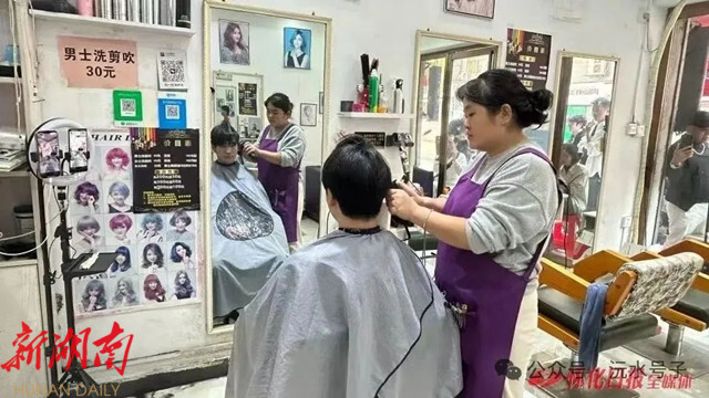 在这里,不用到处奔波打卡美食。“晓华”理发店门口,芷江鸭、新晃黄牛肉、麻阳冰糖橙、溆浦鹅、靖州雕花蜜饯、沅陵晒兰肉等各色各样特色美食可免费品尝,让您乘兴而来、尽兴而归。
