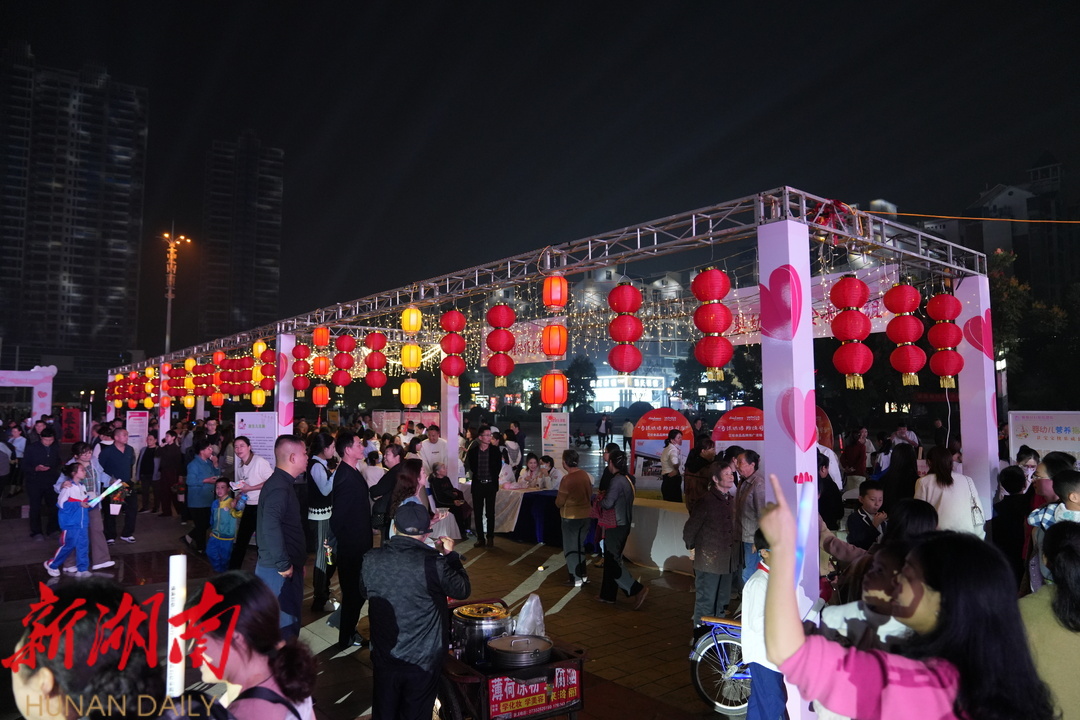 11月15日晚,在湘阴县左宗棠广场,湘阴县妇幼健康文化夜市火热开市,以接地气、互动性强的“摆摊式”的医疗体验形式,点亮群众健康夜生活。