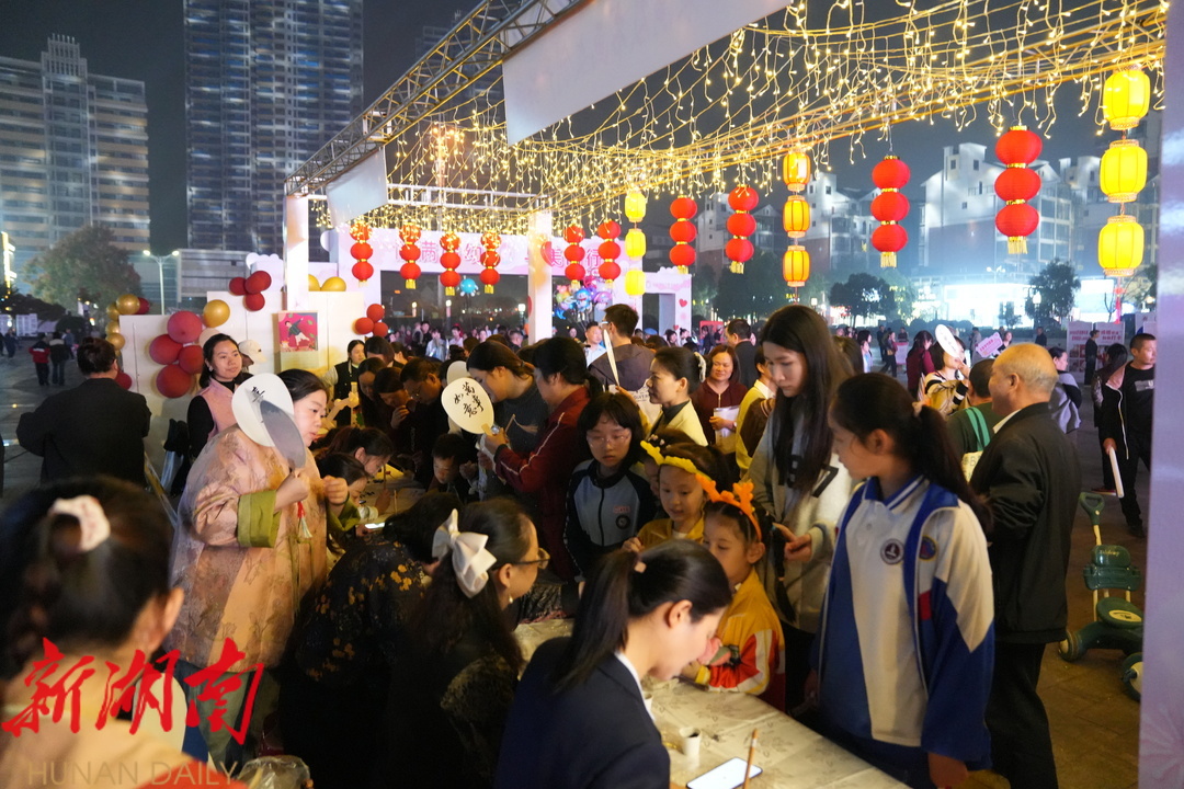 健康文化夜市活动内容丰富多样,包括疫苗接种知识宣传、人体成分检测、儿童口腔健康保健、女书表演及书画文创产品展、妇幼健康文化展示等多个专区,不断吸引着广大群众前来咨询体验,大家欣赏着现场工艺制作,体验着免费的诊疗技术,形成不一样的“烟火气”。