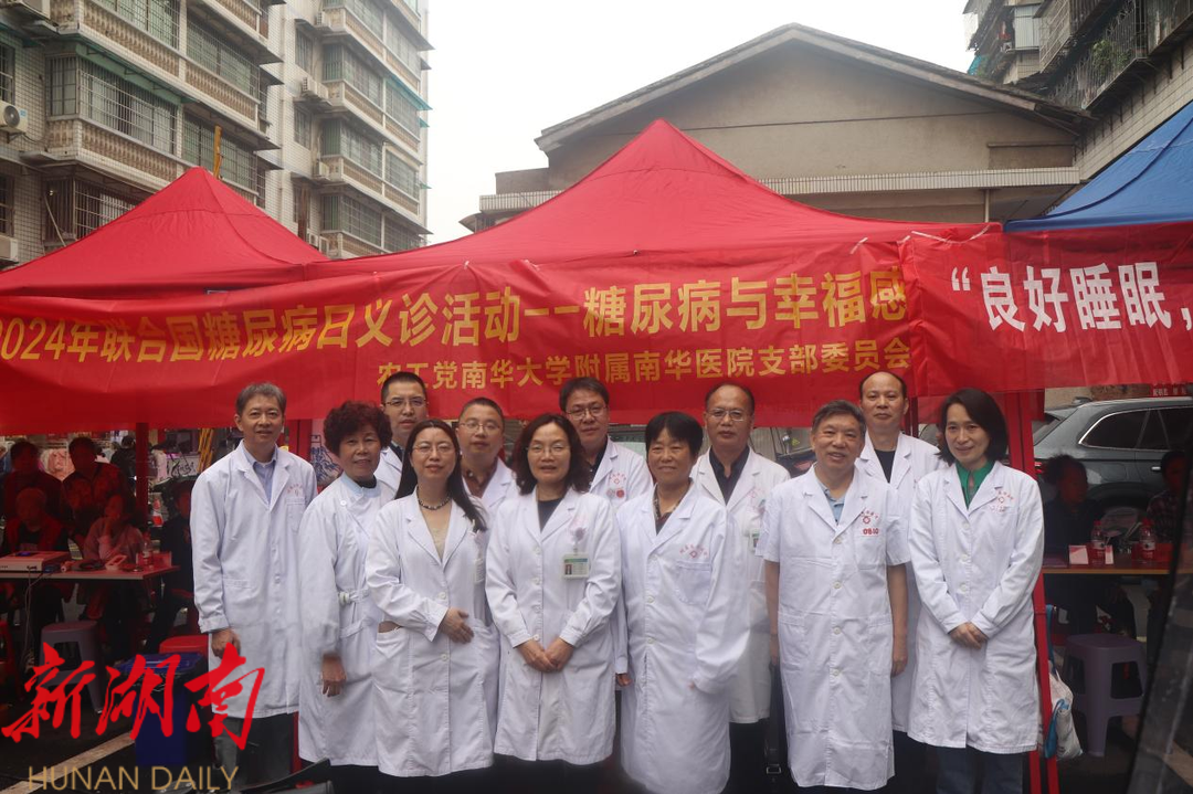 为响应联合国糖尿病日的号召,11月14日上午,农工党南华大学附属南华医院支部联合南华大学附属南华医院内分泌科、眼科、运动医学科、肾内科、儿科、神经内科、耳鼻喉科、普外科、康复医学科等多个学科,在衡阳市珠晖区新民村苗圃农贸市场前坪开展了大型义诊活动。