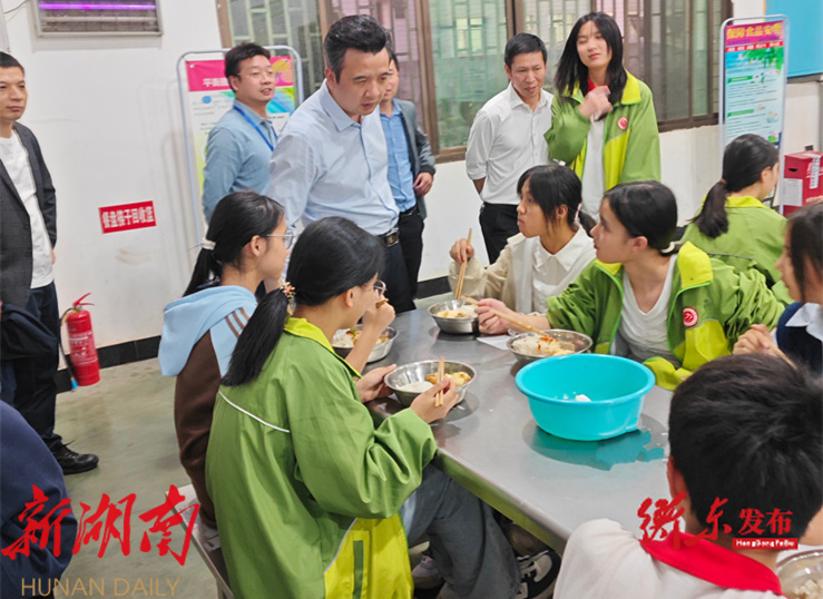 在衡东五中,督查组一行走进学校食堂,详细了解食堂的日常管理、食品安全检验及陪餐情况。督查组强调,学校要夯实食品安全责任,强化工作流程监管,努力营造让师生安心、放心、舒心的就餐环境。