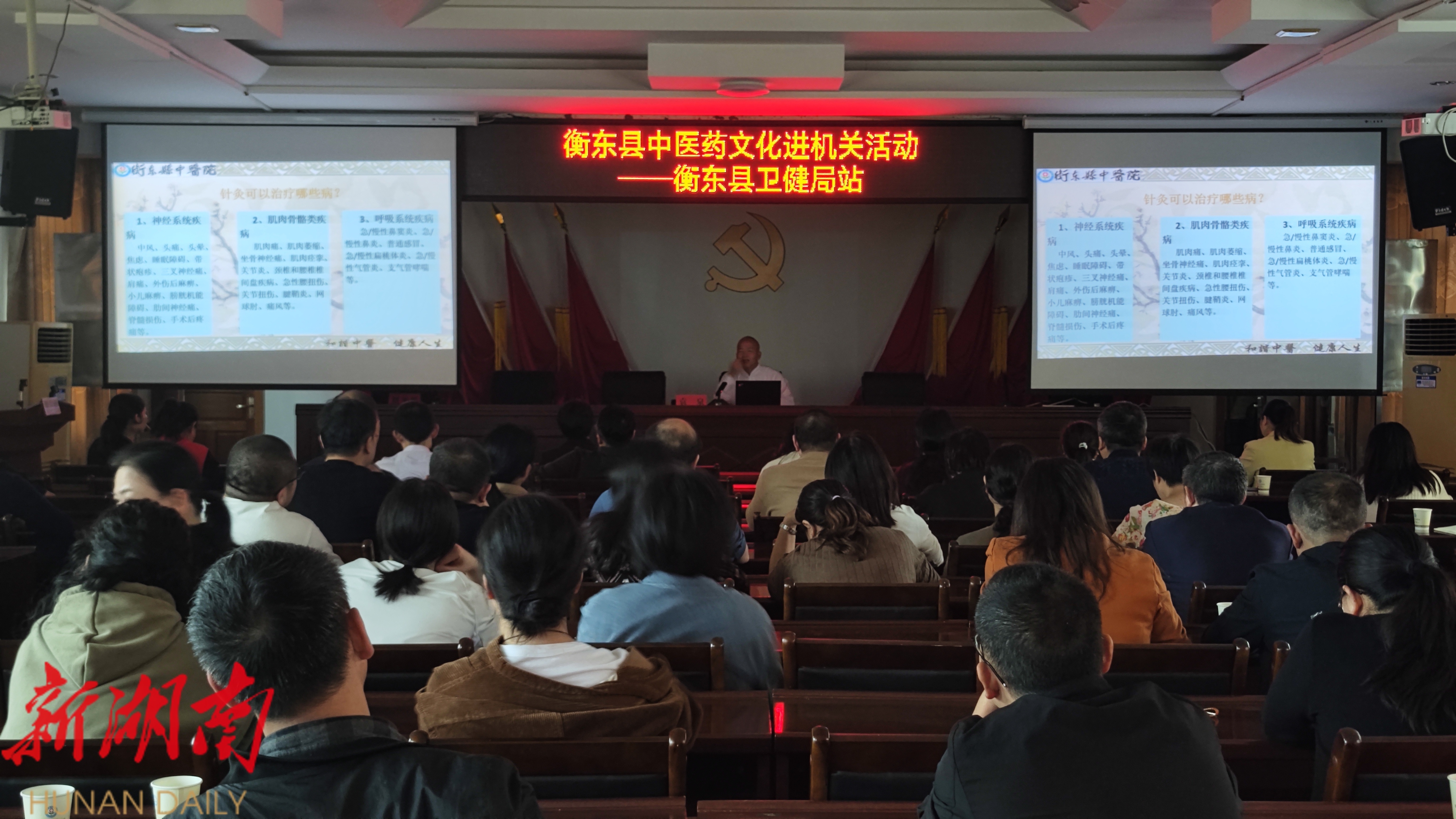 衡东融媒11月19日讯(融媒体记者 苏伟哲)近日 ,县卫健局开展中医文化进机关活动,活动现场,授课老师以《小小一银针,能治很多病》为主题进行中医养生文化知识宣讲,同时开展了推拿、拔罐、艾灸、刮痧、穴位贴敷、耳穴压豆等中医特色技术体验,为机关工作人员普及中医药文化知识,推广中医药特色疗法。