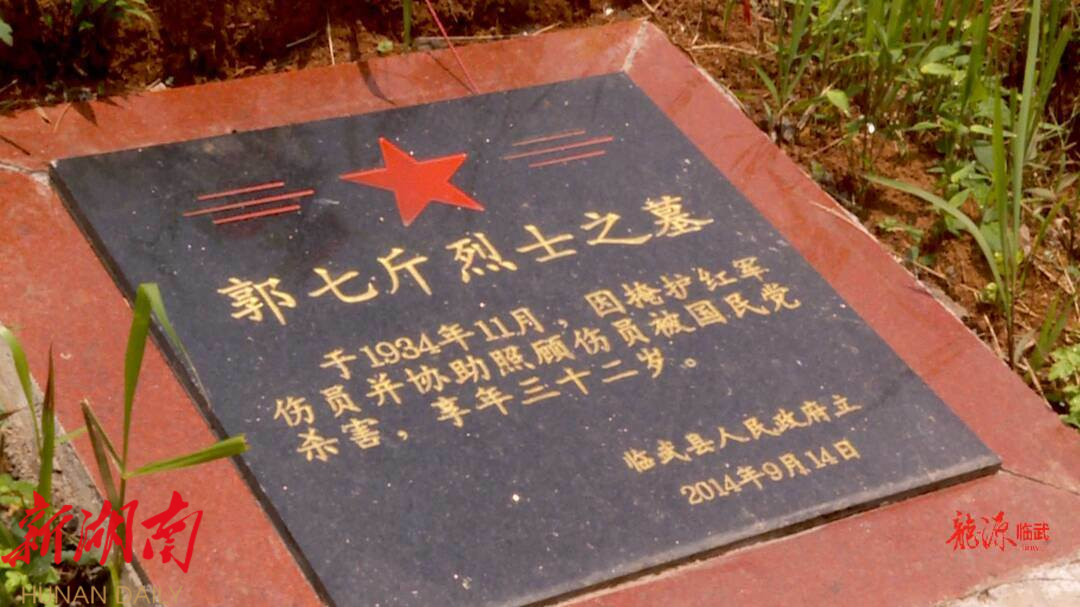 在那个物资极度匮乏的年代,芹塘村的村民们倾尽所有,用实际行动支持着红军。自己吃着野菜和苦糠,却想方设法给战士们补充给养。红军走后,消息不慎走漏,国民党“清乡大队”扬言要“血洗芹塘”。在得知消息后,郭七斤和郭井保迅速组织村民撤离,保护了所有人的生命安全。不过不幸的是郭七斤和有一名村医叫做郭土老却不幸被“清乡大队”逮捕了,他们意志坚定,面对严刑拷打,始终没有透露半点红军的消息。反动派恼羞成怒,一把大火点燃了村子。郭七斤和郭土老也被极其残忍的手段杀害。那个时候,郭七斤32岁,郭土老才28岁。
