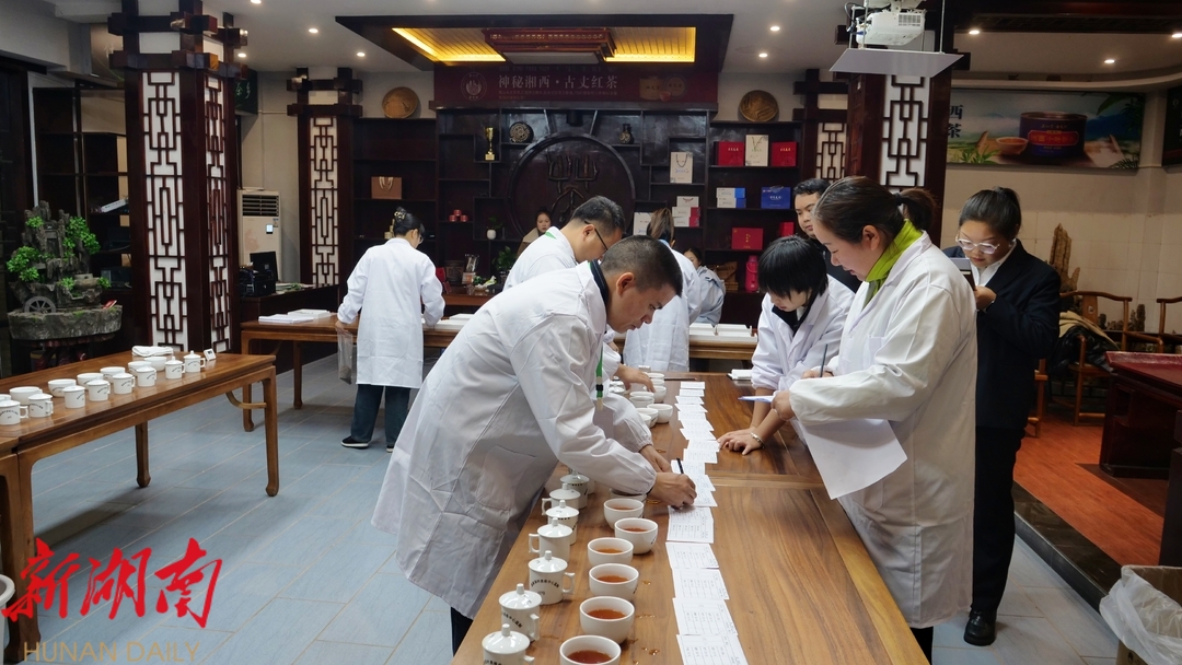 新湖南客户端11月19日讯(记者 余思颖 杨昊天)11月19日,湘西土家族苗族自治州古丈县首届红茶斗茶赛初筛工作顺利进行。经过前期的精心筹备和广泛宣传,吸引了众多红茶制作高手和爱好者的积极参与。此次斗茶赛由古丈县委、县政府主办,相关部门联合承办,是古丈县茶文化推广和茶产业发展的一次重要活动。