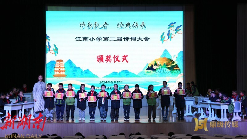 湖南日报·新湖南客户端 11月20日讯(通讯员 罗俪峰 戴泽意)11月19日,江南小学第二届校园诗词大会举行, 大会分抢答题、必答题和飞花令等环节,试题涵盖补全诗句、识别错别字、诗词连线、看图识诗、意境理解等题型。