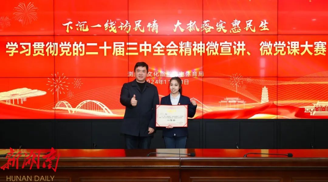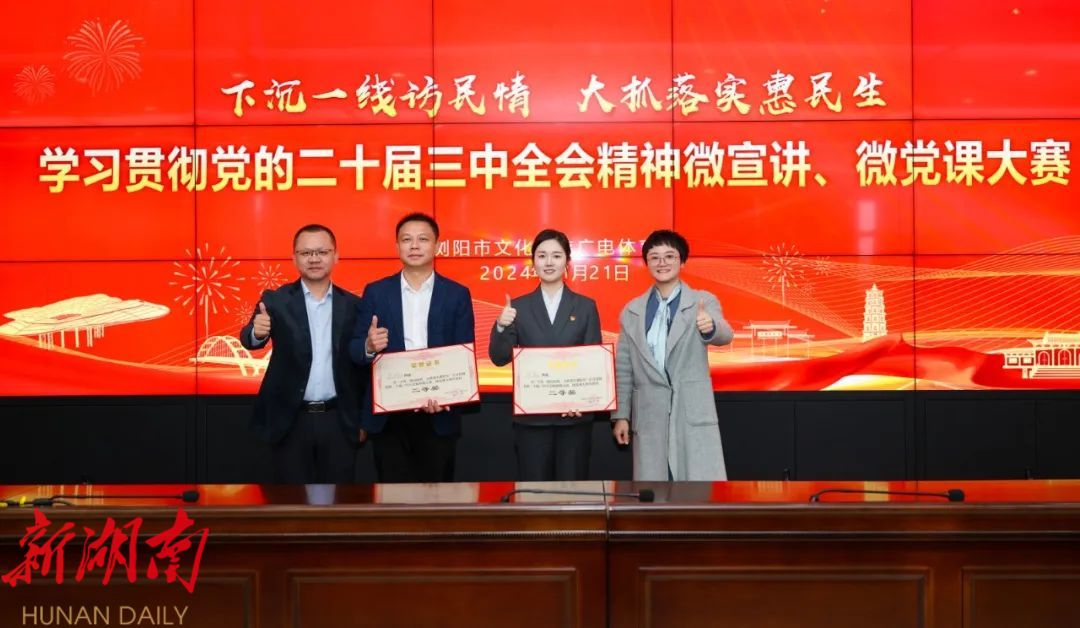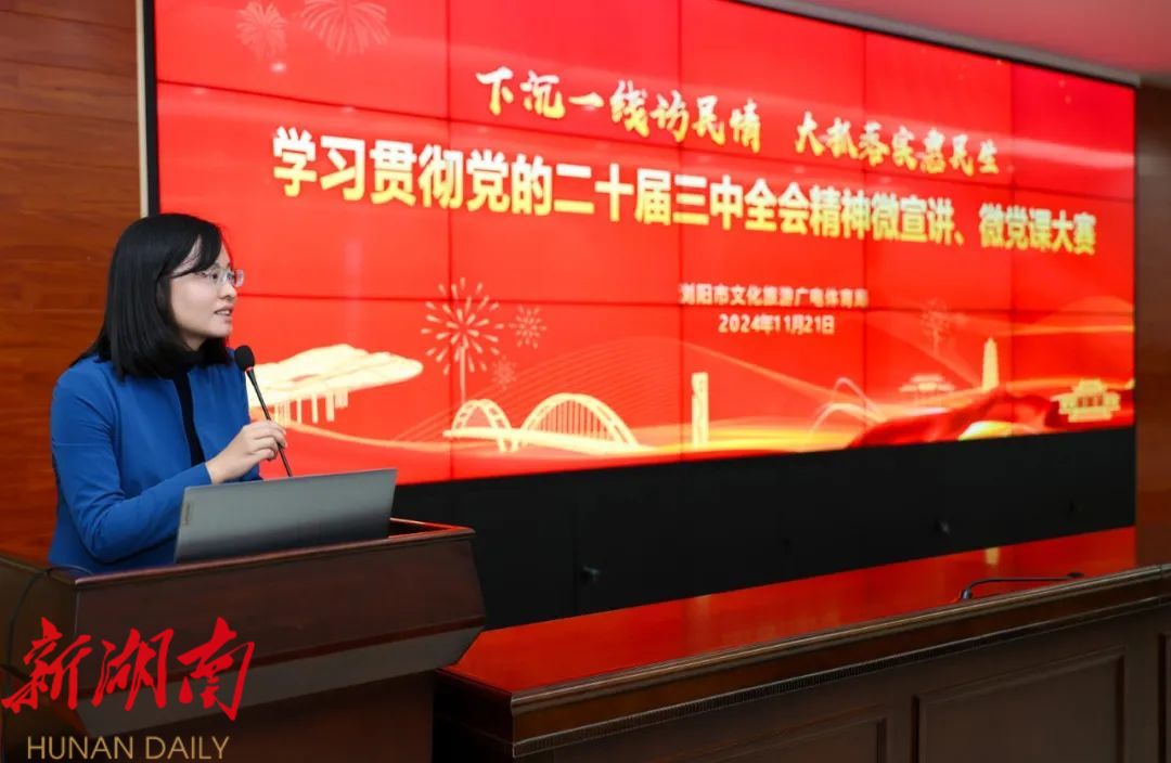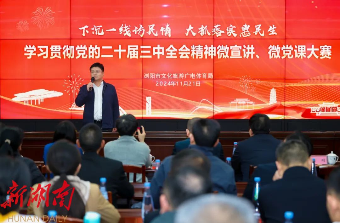 11月21日上午,浏阳市文旅广体局举办“下沉一线访民情 大抓落实惠民生”学习贯彻党的二十届三中全会精神微宣讲、微党课竞赛活动,浏阳市人大常委会副主任杨厚波受邀出席并作点评讲话。本次比赛由浏阳市委宣传部常务副部长赵理,市人大民侨外委主任委员黄龙明,市委组织部副部长陈珍,市直机关工委副书记袁江,驻市委宣传部纪检监察组组长刘定良担任评委。