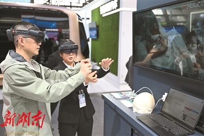 在2024年世界互联网大会“互联网之光”博览会上,参观者体验一款全息智能医学影像系统做手术的过程。新华社记者 蔡湘鑫摄