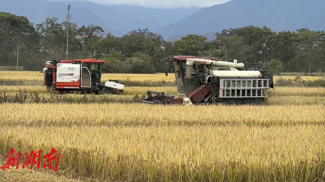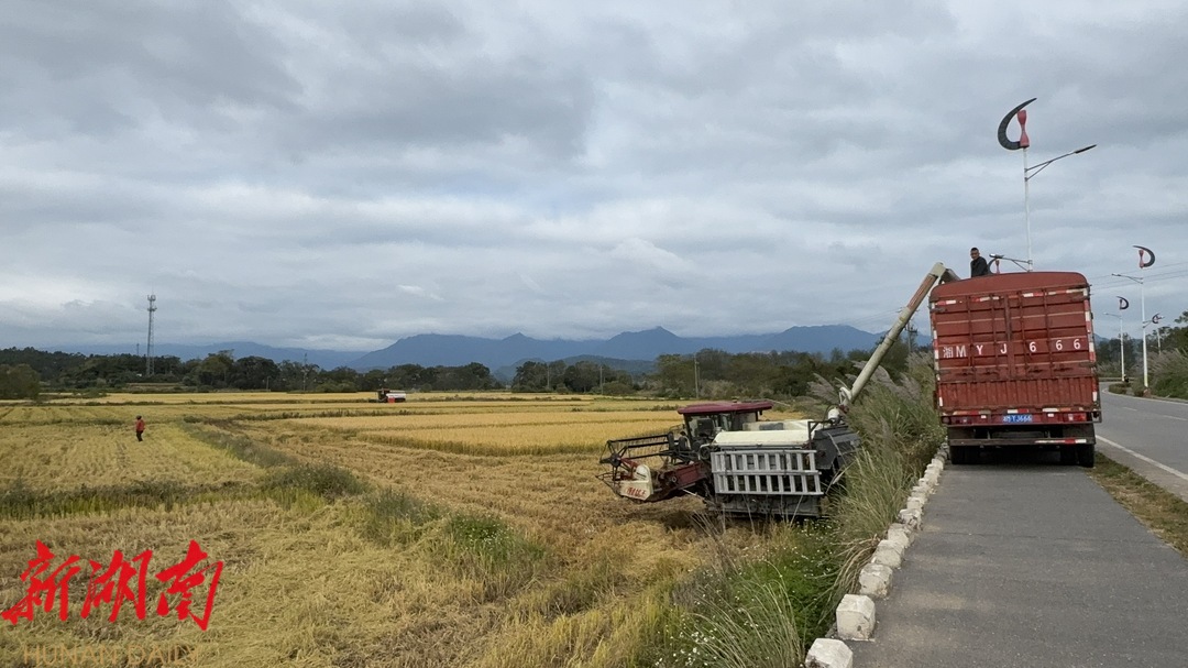 江永:晚稻收割忙 “丰”景如画