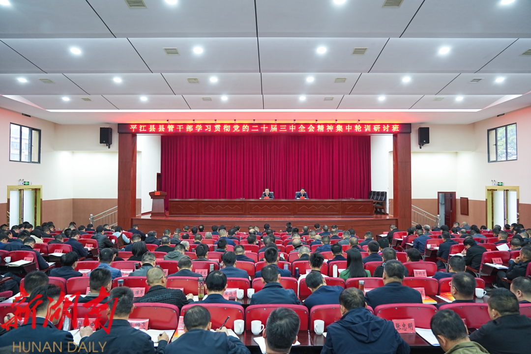 学习宣传贯彻党的二十届三中全会精神是当前和今后一个时期的重大政治任务。举办本次专题轮训研讨班的主要目的就是对标中央和省市做法,在前一阶段学习贯彻的基础上,引领全县上下进一步在深学细悟笃行上下功夫,更好推动党的二十届三中全会精神在平江落到实处、取得实效。